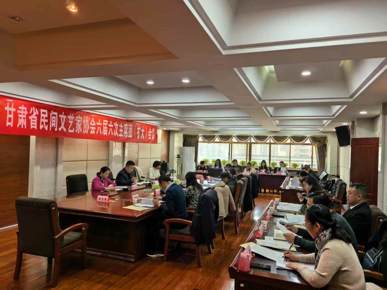 会议分两个阶段进行,甘肃省民间文艺家协会六届六次主席团会议由省民协主席徐黎丽主持,甘肃省民协六届主席团成员参加会议。会上审议通过了省民协2024年重点工作;审议通过了增补张晓、徐凤为省民协六届理事会理事,卸免徐平林、王吉祥省民协六届理事会理事;进行了省民协主席团成员、理事会理事2024年度述职考核;审议通过123位民间文艺工作者加入省民协。