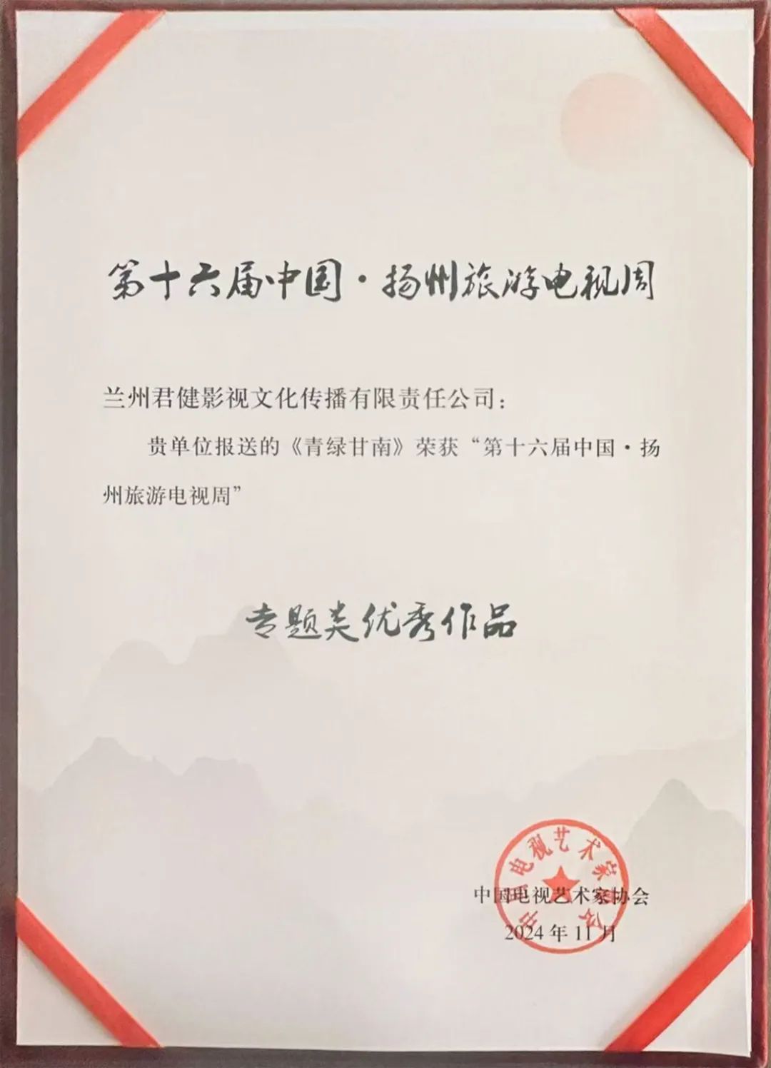 兰州君健影视文化传播有限责任公司报送:《青绿甘南》获得旅游专题类优秀作品奖项;